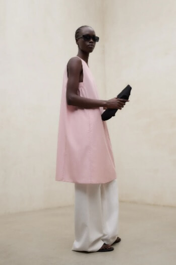 El Vestido Francesca está fabricado con un tejido principal de 72% TENCEL™ LYOCELL. Fit relajado. Sin mangas y escote en V. Costados con banda elástica fruncida.