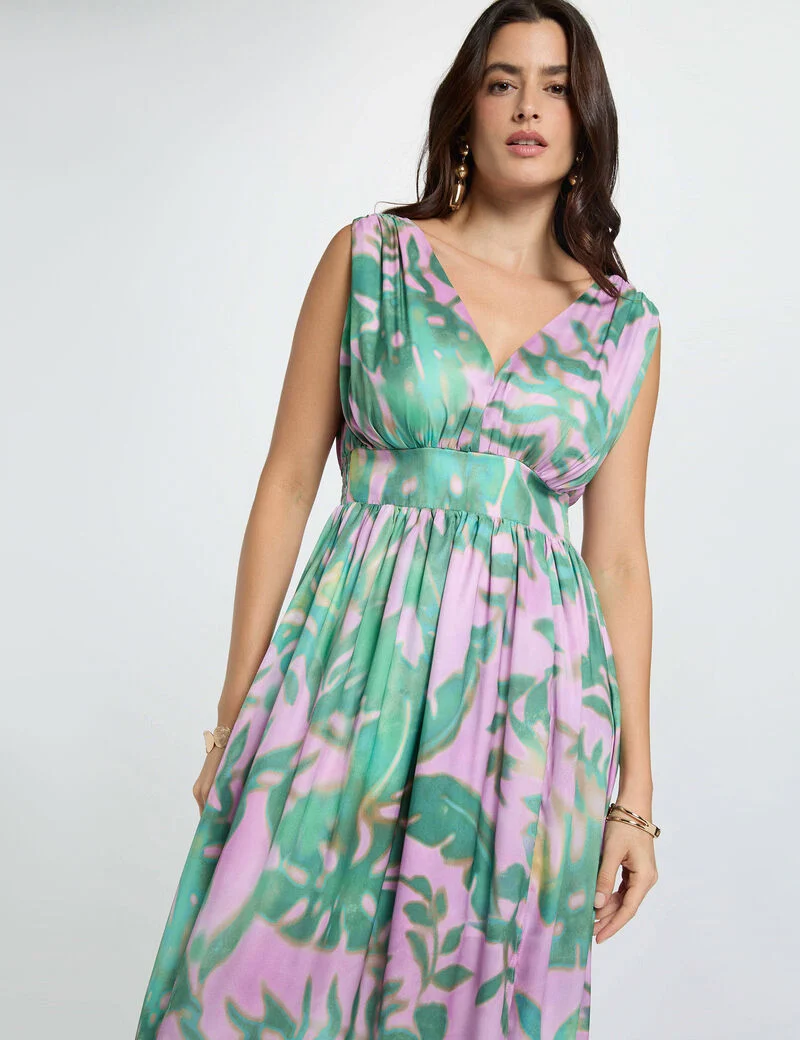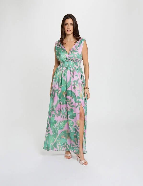 Etiquetas cuello v, fluido, largo, Morgan de Toi, multicolor, R7, relif, vestido