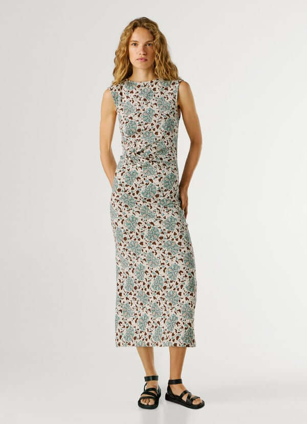 Etiquetas algodoón, estampado, floral, largo, Pepe Jeans, vestido