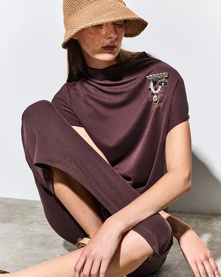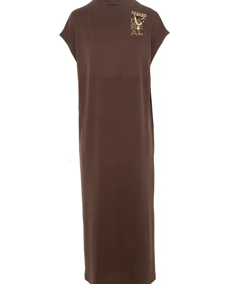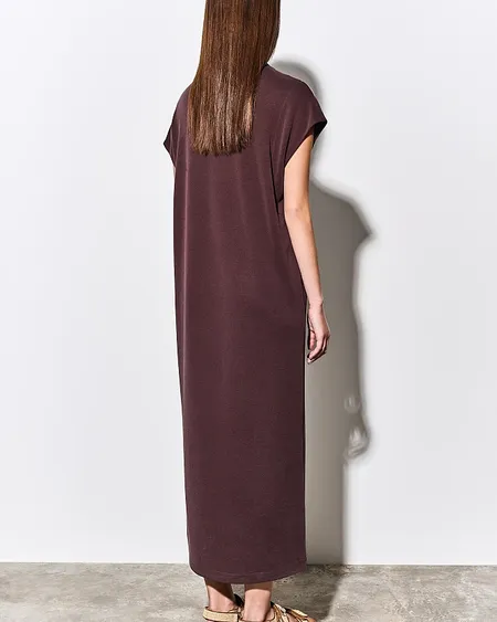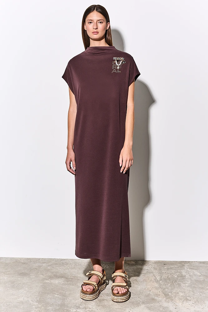 Vestido maxi de cuello alto de manga corta, con detalle brillante, tacto suave, corte regular