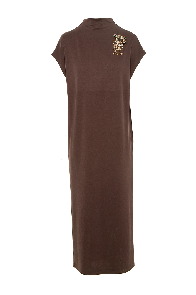 Etiquetas Bsb, chocolate, cuello alto, maxi, vestido, W7