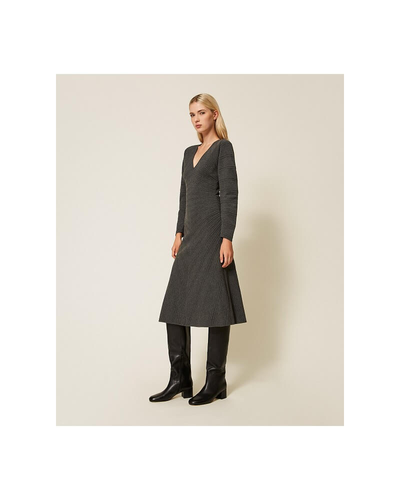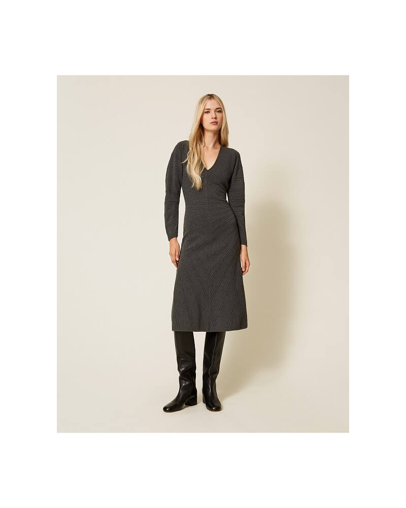 Etiquetas canalé, gris, midi, punto, Twinset, vestido, W7